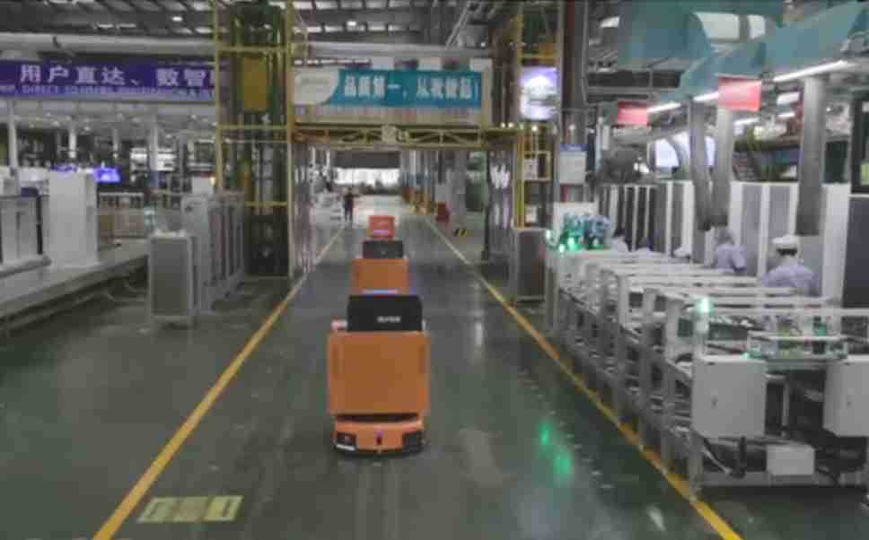 为车载冰箱物流配送打造的智能解决方案,,包含产中物流通过潜伏举升AMR搬运至线边,,,产后成品物流智能仓储,,,流程包含产中物流智能齐套入库,,,线边安灯叫料AMR智能配送至线边,,,,成品入库、、、出库,,,,通过无人堆高车机器人,,,,智能仓储管理替代人工作业管理,,,,实现更高存储、、、、更高效率、、、更具柔性化的解决方案。。